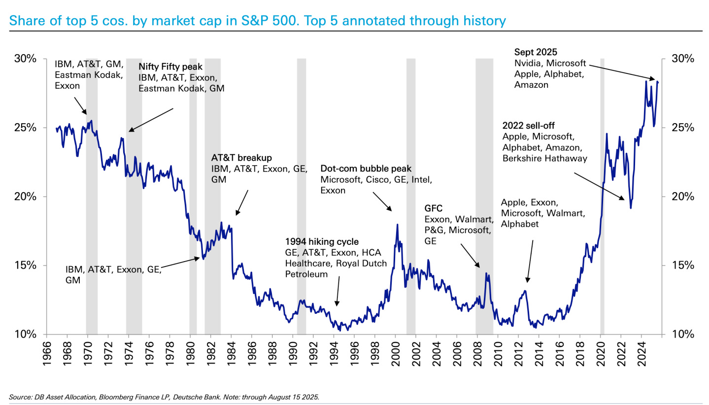 The US stock market has become more top-heavy than ever before: the top five companies in the US stock market (Nvidia, Microsoft, Apple, Google, and Amazon) now account for 30% of the S&P 500 index’s total market cap, the highest fraction since at least 1966. Nvidia, the largest of the bunch, is putting up eye-popping stats: its market cap “is now larger than every country’s entire listed stock exchange apart from the U.S., China, Japan, and India.” Financial researchers warn that the American stock market is thus a “bubble risk,” with extreme price-to-earnings ratios, and that “we appear to be in uncharted territory.”