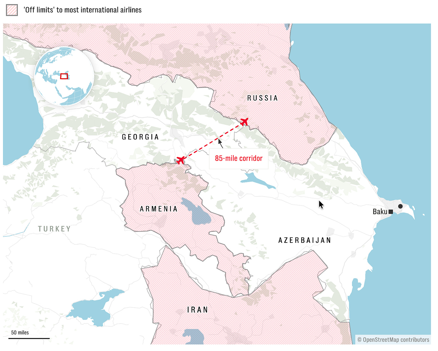 The outbreak of war in the Middle East has caused airspace over Iran, Syria, Israel, Iraq, and several of the Gulf States to close. Flights from Europe to Asia (and vice versa) have had to route around the region, either swinging south through Saudi Arabia (a country whose capital has been hit by drone strikes) or north. The problem with the northern route is that Russian airspace has been closed to Western airlines since 2022, so thousands of flights now have to squeeze through a narrow, 85-mile-wide chokepoint in Georgia and Azerbaijan (many airlines avoid flying through Armenia due to its conflict with Azerbaijan). Azerbaijan airspace saw traffic grow fivefold from 2021 to 2025, and itâs likely to get even more crowdedâraising fears of severe travel disruption if this bottleneck ever gets shut down for some reason.